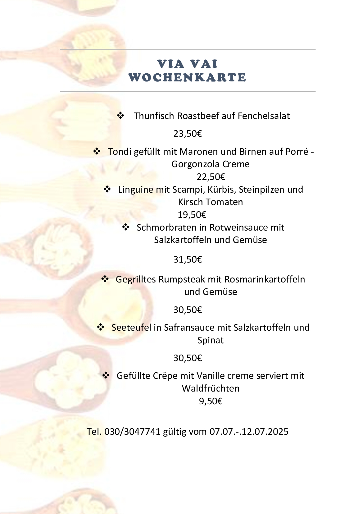 Seit mehr als 20 Jahren existiert das "Via Vai" in der Reichsstraße 9 als einzige Salumeria in Westend und ist damit die richtige Adresse für Liebhaber von italienischen Spezialitäten. Im Verkauf erhältlich sind Feinkostartikel wie Pasta und Saucen, Öle und Balsamico, Marmeladen und Chutneys, Süßwaren sowie Weine, Prosecco und Spirituosen aus der Heimat des Inhabers Donato Sportelli, der den Betrieb seit zwölf Jahren erfolgreich führt. Weiterhin bietet die Frischetheke Wurst- und Schinkenspezialitäten aus "Bella Italia", aber auch Käse und eine Vielzahl an feiner Antipasti. Darüber hinaus ist das "Via Vai" auch beliebter Treffpunkt für alle, die hier vor Ort die Küche Italiens genießen wollen, denn auf der Speisekarte stehen zurzeit Spargelspezialitäten, unter anderem mit Tagliatelle oder Kalbsschnitzel serviert, aber auch der frische Fisch, unter anderem Babysteinbutt, Seeteufel, Schwertfisch oder Thunfisch, wird hier nach italienischen Rezepten in der offenen Küche für die Gäste zubereitet. Das "VIA VAI" verfügt über 55 Innen- und 20 Außenplätze und bietet auf Wunsch auch ein Catering für maximal 100 Personen für Ihre private Feier an.